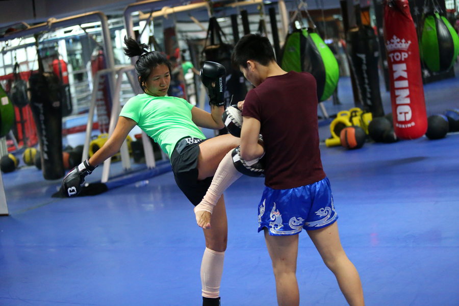 被汗水浸透的運(yùn)動(dòng)衣,厚重的拳擊手套,有點(diǎn)小肌肉的臂膀,搏擊中高高束起的辮子,都會(huì)讓人的心為之柔軟,同時(shí)又被深深地震撼。一拳一腿之間,感受著自己的呼吸,身體和心靈一起升華,一個(gè)自由的身體才會(huì)可能有心靈的自由。